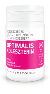 A koleszterin az állati eredetű zsírokban található. A növények is tartalmaznak a koleszterinhez hasonló növényi zsírokat, amelyek rosszul szívódnak fel. A koleszterin emellett a szervezeten belül is képződik. A koleszterin szükséges a szervezet egészséges működéséhez, ám a nagy koleszterintartalmú étrend egyik kockázati tényezője lehet egyes szív- és érrendszeri betegségeknek. A vér LDL- („rossz”) koleszterinszintjét erőteljesen emelik az étrendben lévő telített zsírsavak. A túlzott mennyiségű koleszterin lerakódva az erek falában azok rugalmasságát csökkenti, és elősegíti az érelmeszesedés kialakulását. Ajánlatos minden felnőtt vérzsírszintjét 2 évenként ellenőrizni, mivel csak vérvizsgálat deríthet fényt a kóros értékekre. Koleszterinszegény diéta alkalmazására akkor van szükség, ha a “rossz” és a “jó” koleszterin (LDL és HDL) értékaránya megváltozik és/vagy emelkedett triglicerid szintet igazolnak. A koleszterinszegény diétával azonban csak kevéssé lehet befolyásolni a szervezet koleszterinszintjét, mivel a a szervezetben található koleszterin 75–80%-át a szervezet maga állítja elő. A Pharmacoidea OPTIMÁLIS KOLESZTERIN terméke a zsíranyagcsere kedvező befolyásolásán és a keringő koleszterin csökkentésén keresztül támogatja a normál koleszterinszint fenntartását.
